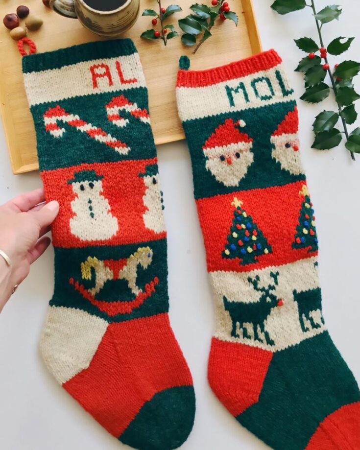 As briefly mentioned above, customizing your stockings is such a fun way of personalizing and embellishing your hard work! You can do this by using your favorite color palette for yarns, adding patterns like stripes or snowflakes and names or initials. In fact, if this isn’t your first rodeo making knitted stockings, you can also experiment with different knitting stitches to make your stockings truly one-of-a-kind.