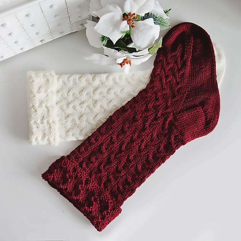Check out this traditional yet adorable Cardo stockings that are approximately 14” in circumference and 12” in length. It’s knitted from the cuff to the toe with an afterthought heel, making it a design suitable for advanced beginners/intermediate knitters.