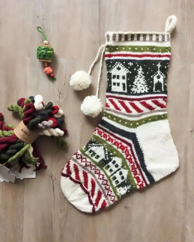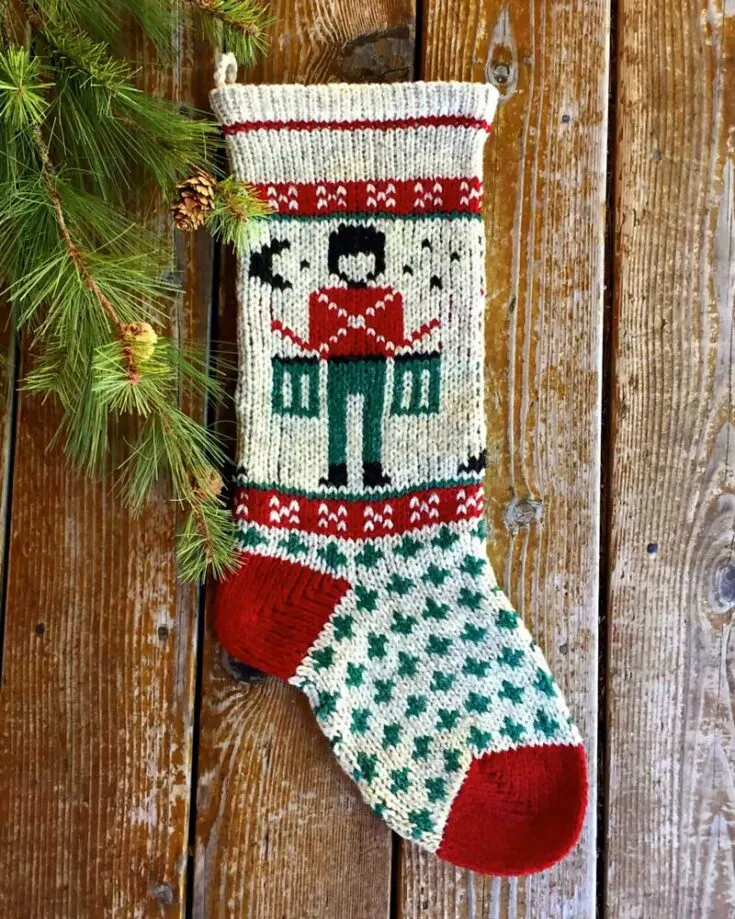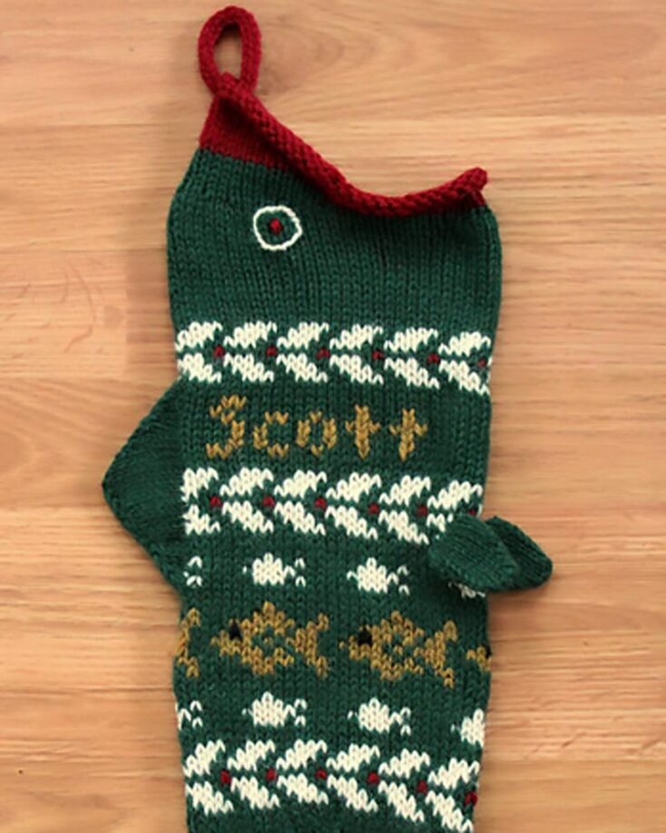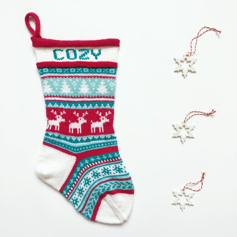 Here’s another unconventional stocking design that is one of our personal favorites! Isn’t it adorable? It’s a pattern fit for advanced beginner/intermediate knitters, and it’s knitted in the round from the top down with no seams. Give it a try!