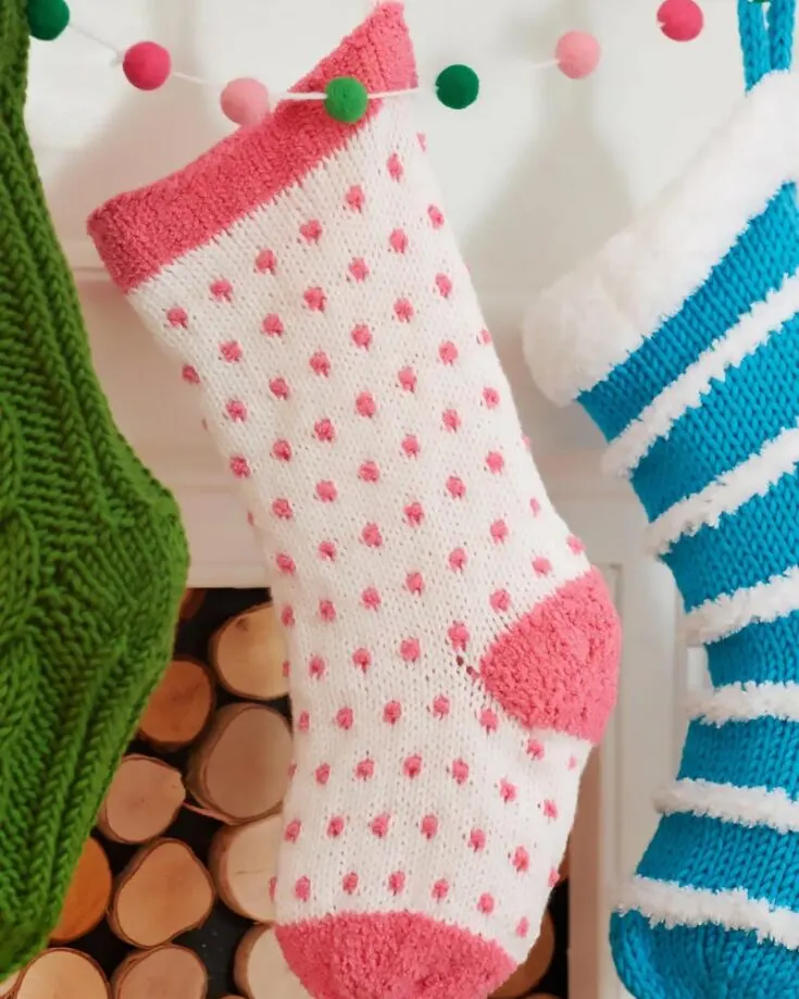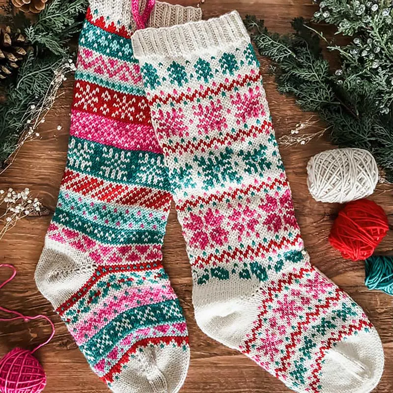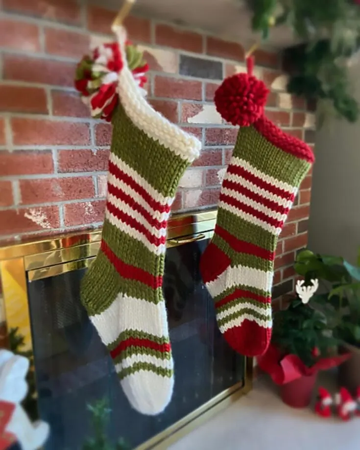 The options are endless when it comes to choosing the perfect knitted stocking patterns. Think classic red and green stripes, snowflake motifs, or even a fun reindeer design—we have them all! You could also personalize them, such as embroidered initials so everyone knows who is whose when Christmas morning comes, and many more. Whatever style you go for, we promise that a handmade Christmas stocking will indefinitely add a bit of cheer and jolly goodness to your holiday traditions.