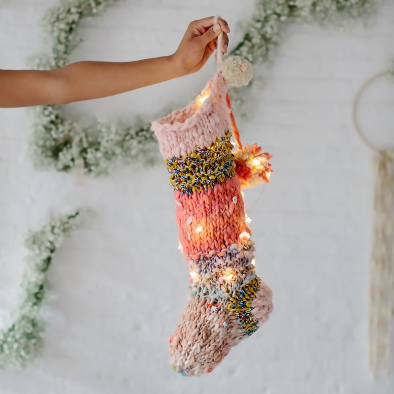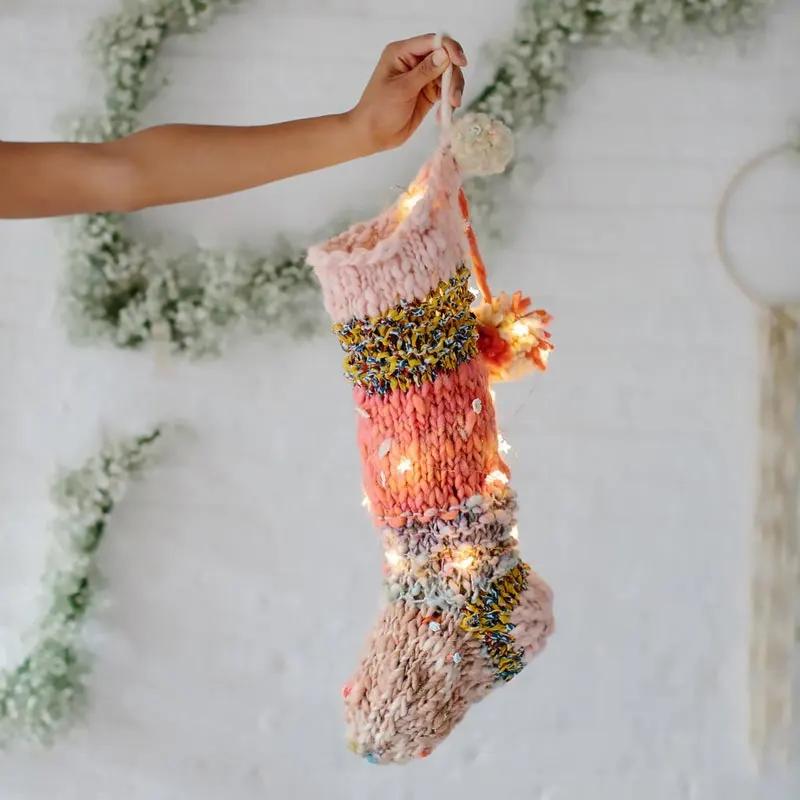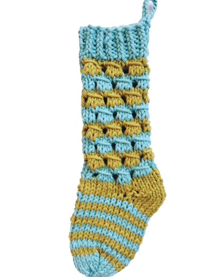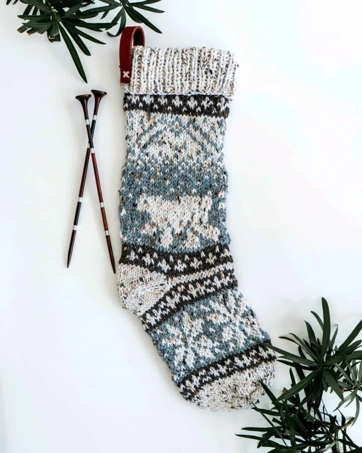 Get your knitting kits out for this beginner-friendly stocking pattern! It’s an effortless pattern that is worked from the top down with a German short-row heel, and it has so much space to hold your gifts. It measures 19” in length and 7” wide.