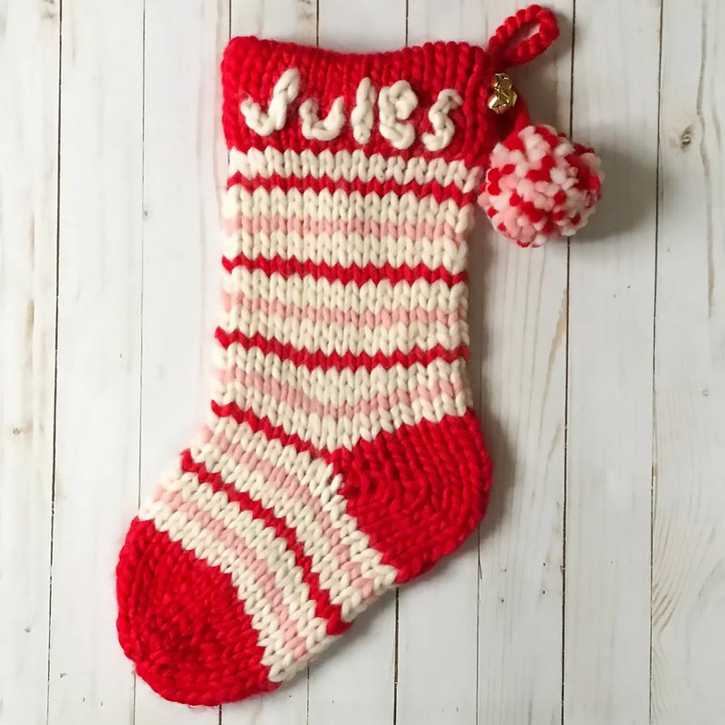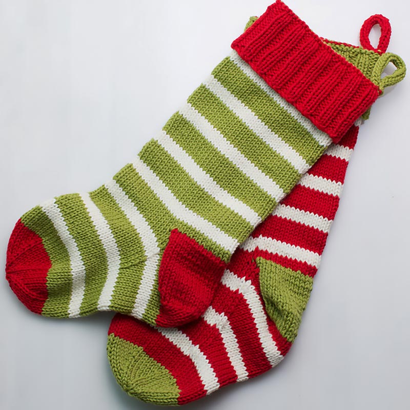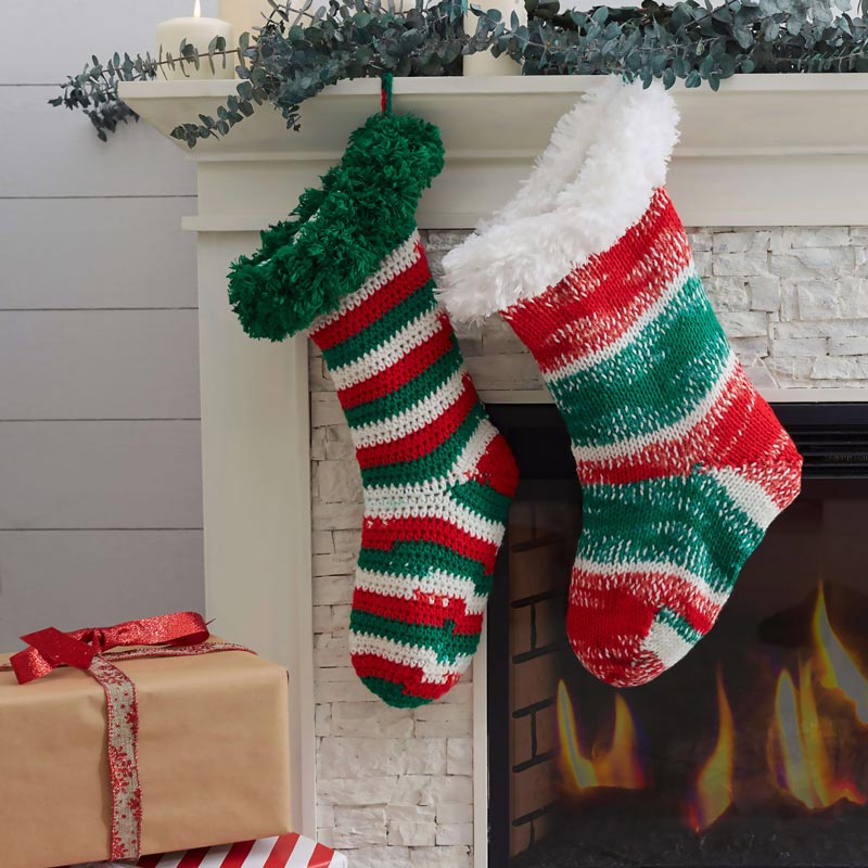 Give this advanced beginner/intermediate-level knit project a try! It uses various types of chunky yarn that makes these stockings quick-knit. This pattern results in stockings measuring 13” wide and 22” long.