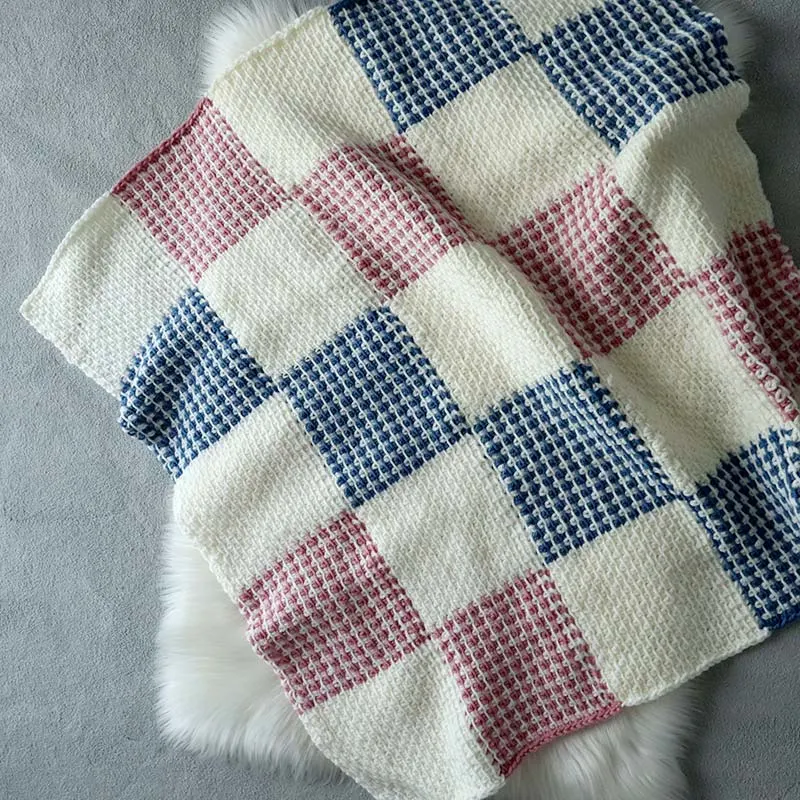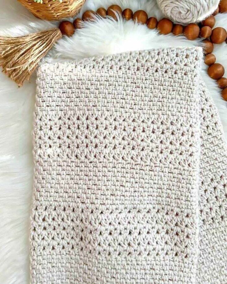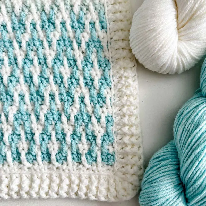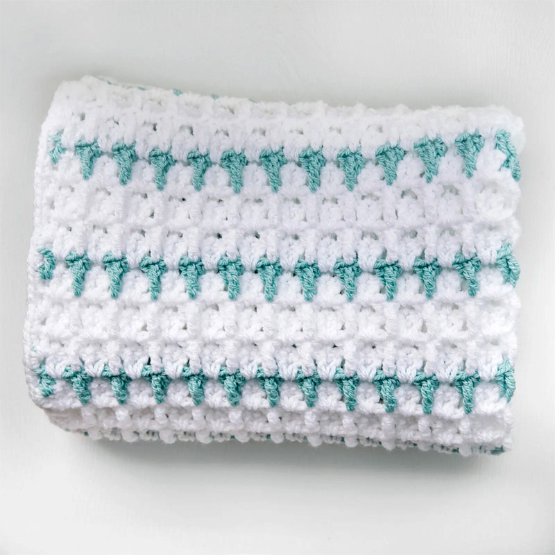 Make a cozy, gender-neutral blanket with the timeless block stitch, combining single and double crochet stitches. Perfect for any skill level, and with a little patience, you’ll have it finished in no time!