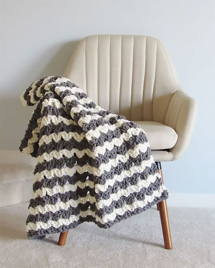 Keep yourself warm and cozy as the temperatures drop with this chevron super-bulky pattern. It's simple and would make a fun addition to your blanket collection!
