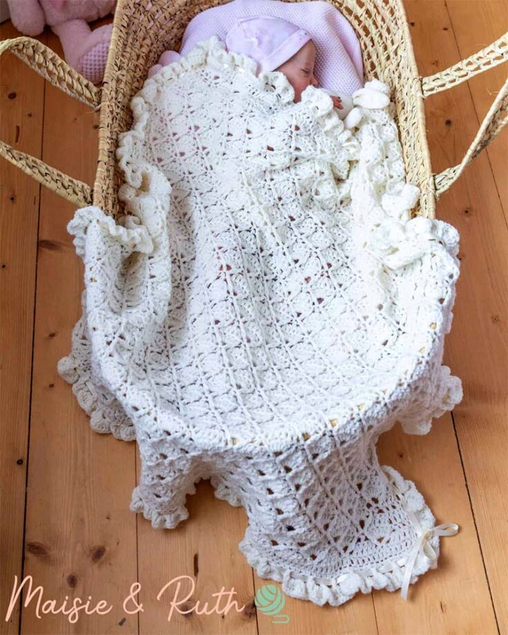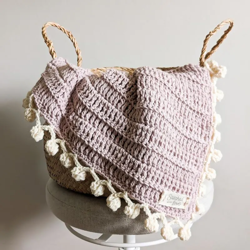 Take up this beginner-friendly baby blanket that's filled with feminine lace-like textures that will keep your baby as snug as a bug in a rug!