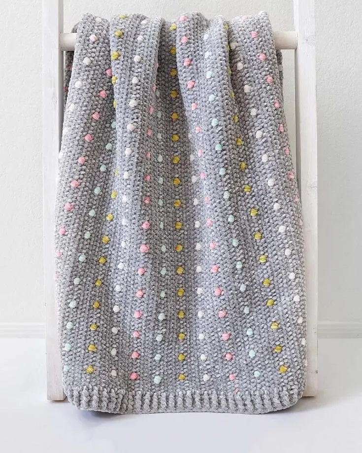 The Candy Dots Baby Blanket is a fun, beginner-friendly project featuring colorful pastel pops on a soft gray background. It’s perfect for baby gifts and combines coziness with charm. Easy to make and super cute, this design is all about happy vibes!