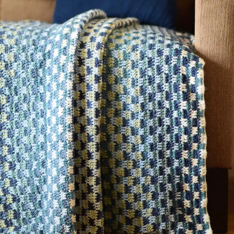 Made with beginner-friendly crochet squares, this blanket is perfect for avid beginners! Instead of seaming, the squares are crocheted together, creating a faster assembly and a beautifully textured finish.