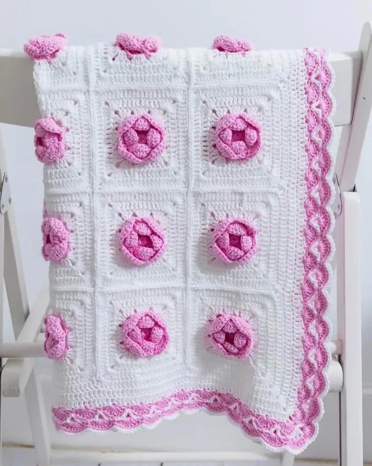 Crochet Rose Baby Blanket (A Delightful Free Pattern)