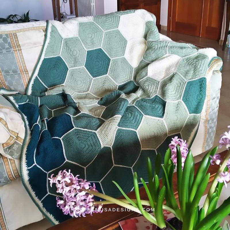 Piece together stunning solid hexagon shapes to create this gorgeous blanket! It’s a bit of a time and effort investment, but trust me—the final result is absolutely worth it.