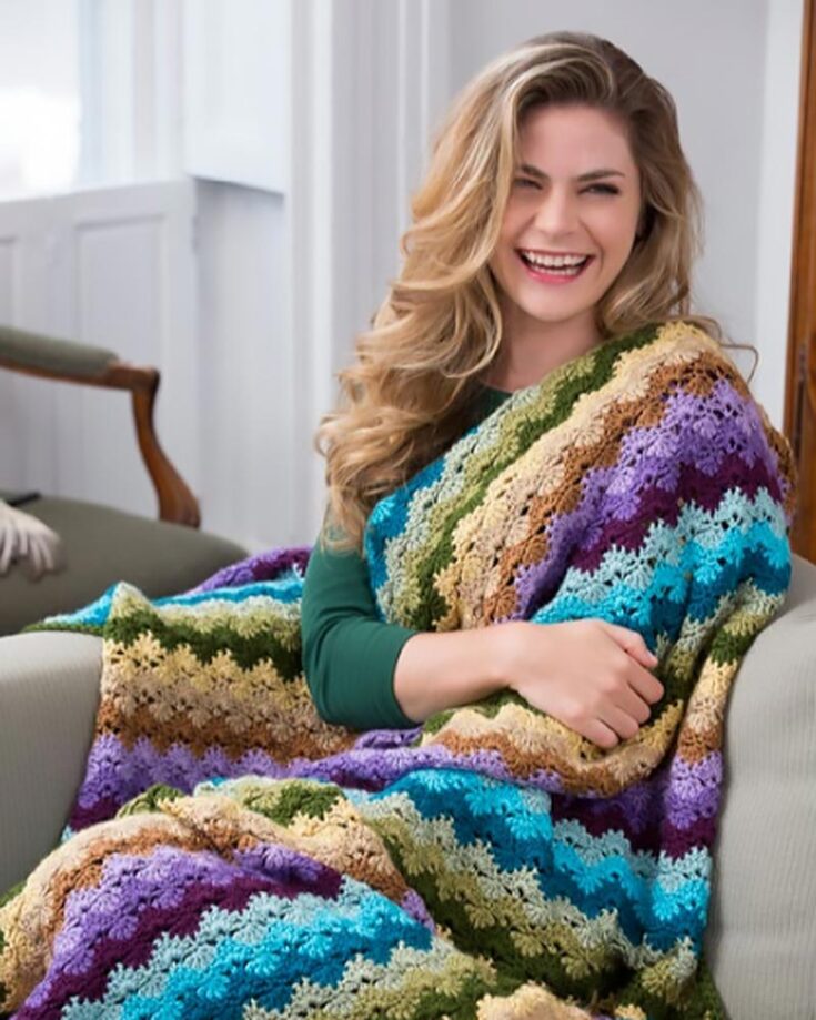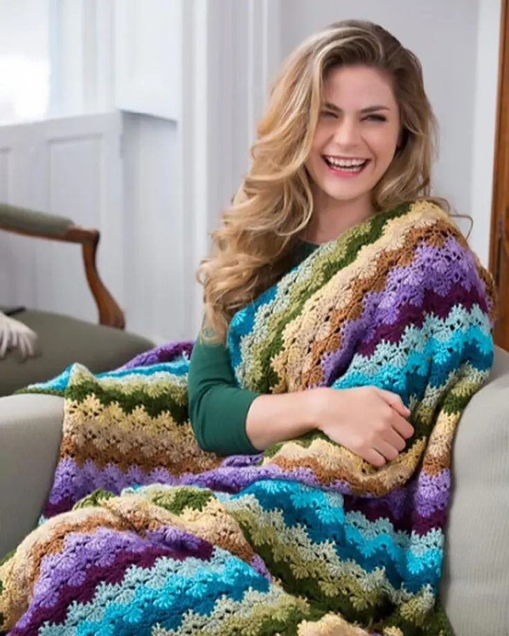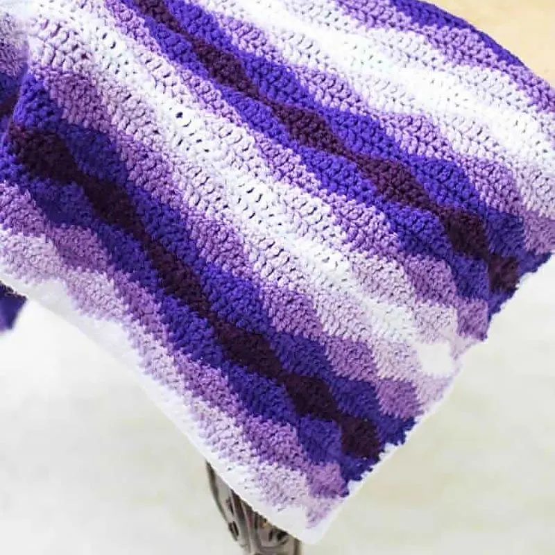 Crochet this fabulous blanket in no time! Its flowing gradient wave pattern creates a dazzling, eye-catching design that’s sure to make a splash.