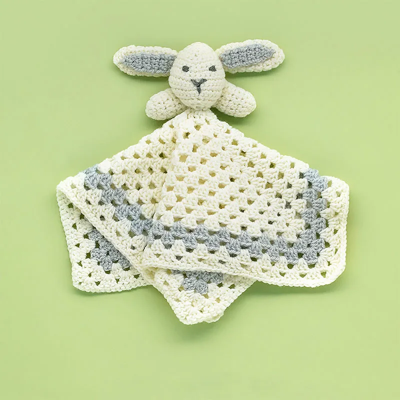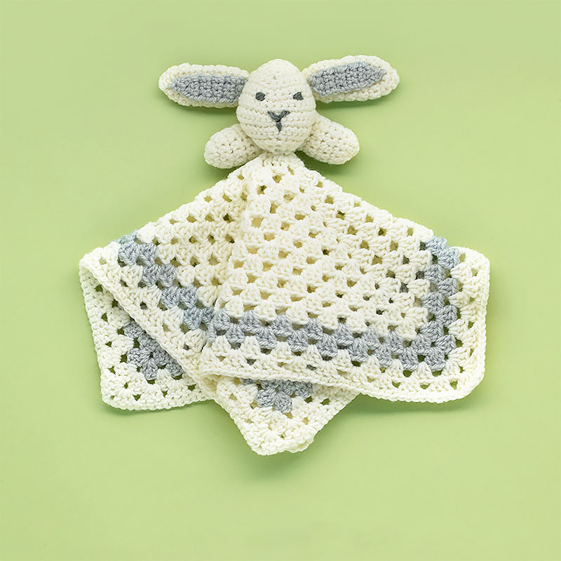 This cute snuggle bunny is a 30cm (12") blanket that is beginner-friendly and would make such a great gift for any newborn.