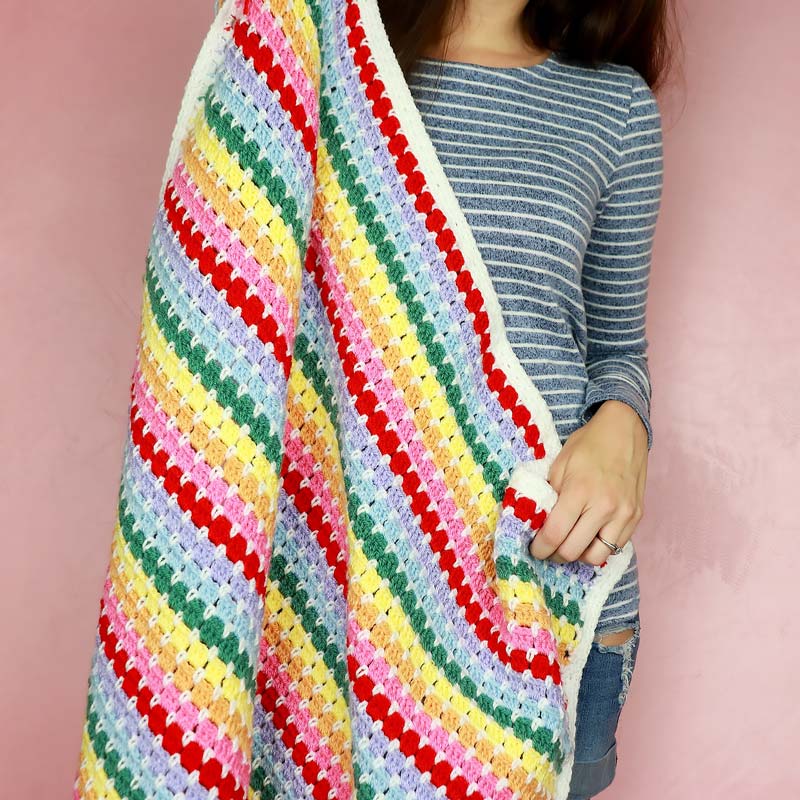 Learn how to make this Star Stitch striped blanket with this intermediate-level pattern! It includes a written guide, a video tutorial, and a handy color chart to make your project a breeze.