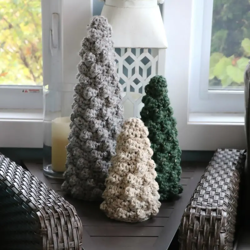 They say the best things come in threes! Well, this Christmas tree trio can easily be made using the bobble stitch, giving them a puffed-up 3D feel while looking so cute! This pattern comes with instructions for three sizes.