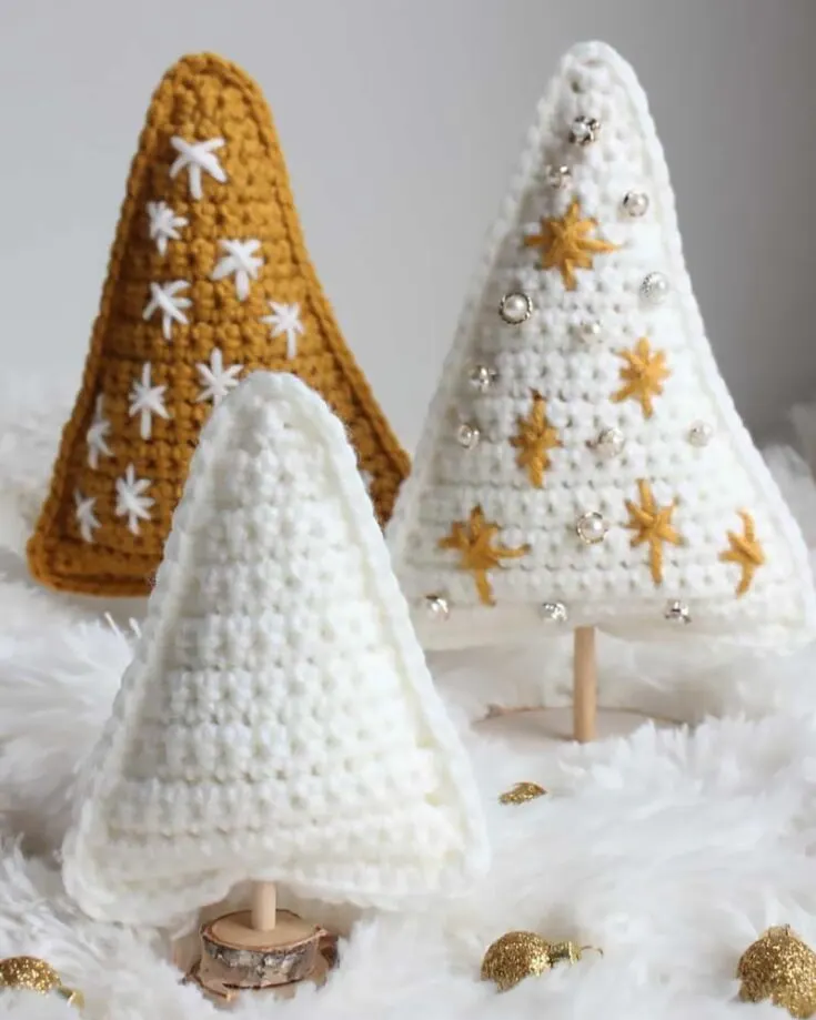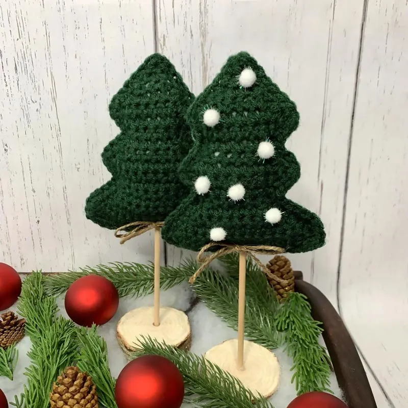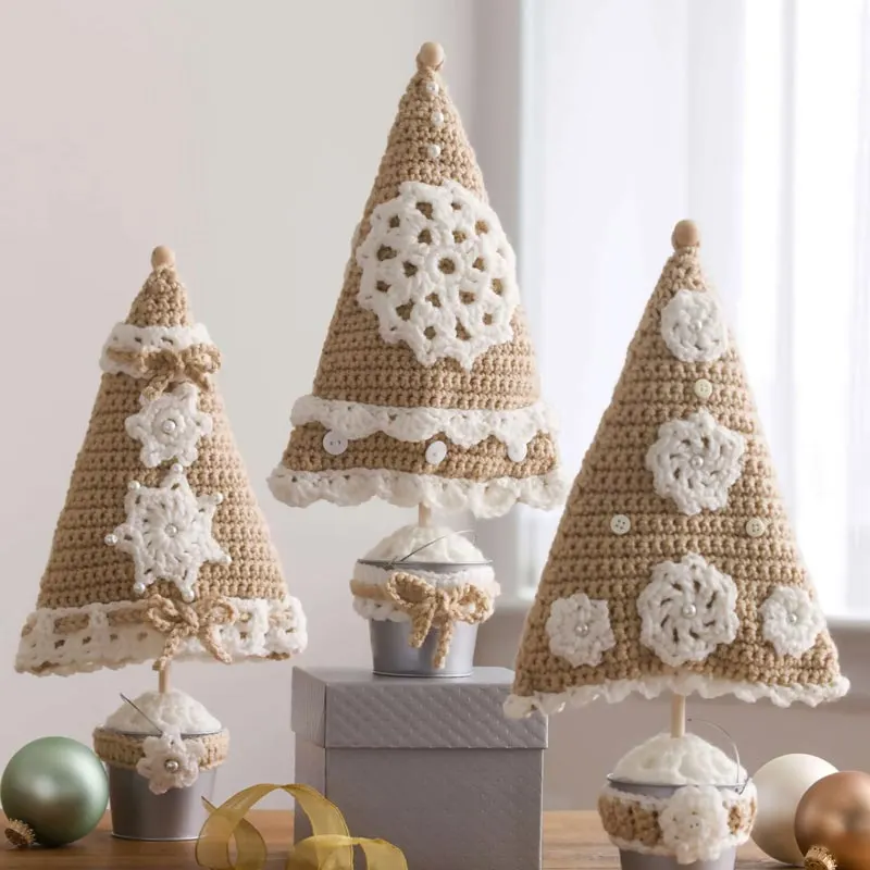 These whimsical beginner-friendly trees are made from 2 crochet flat Christmas tree panels, joined together and stuffed with Fiberfill. Isn't that cool?