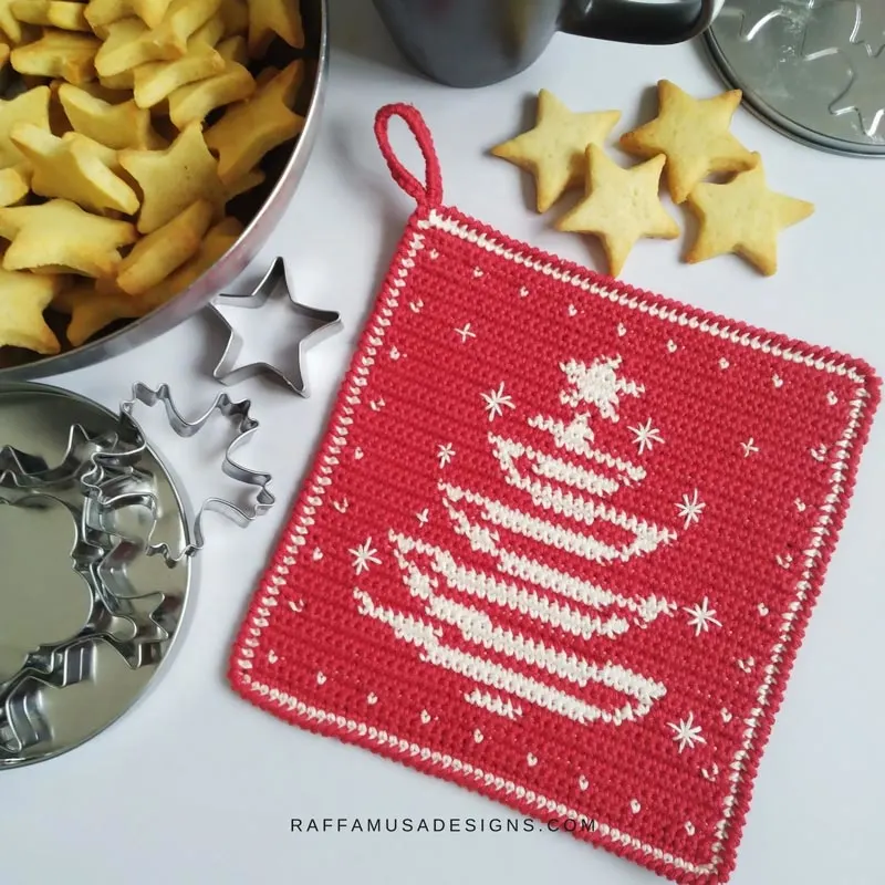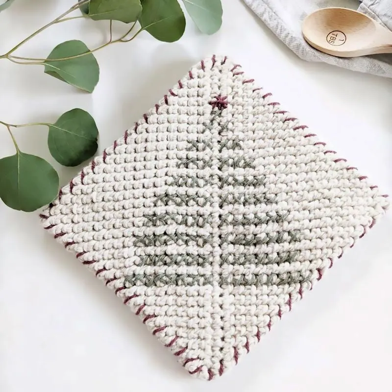 Want to learn how to make this fantastic Christmas tree potholder? It's super beginner-friendly as it consists of only single crochet stitches! This pattern is a fast-crochet project and it elevates your dining space for the upcoming holidays. The finished size is 7 ½ " x 7 ½ ".
