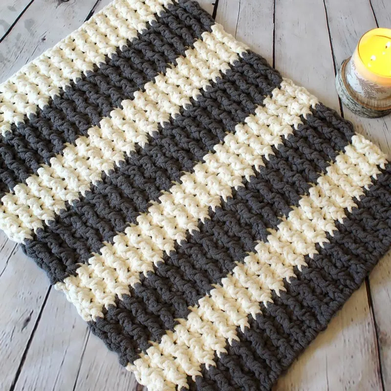 You’ll notice that many crochet rugs or projects generally use all sorts of stitches to create a textural finish to their patterns. However, if you’re going for a simple-textured rug with no elaborate patterns or designs, then these common but popular stitches will suffice: