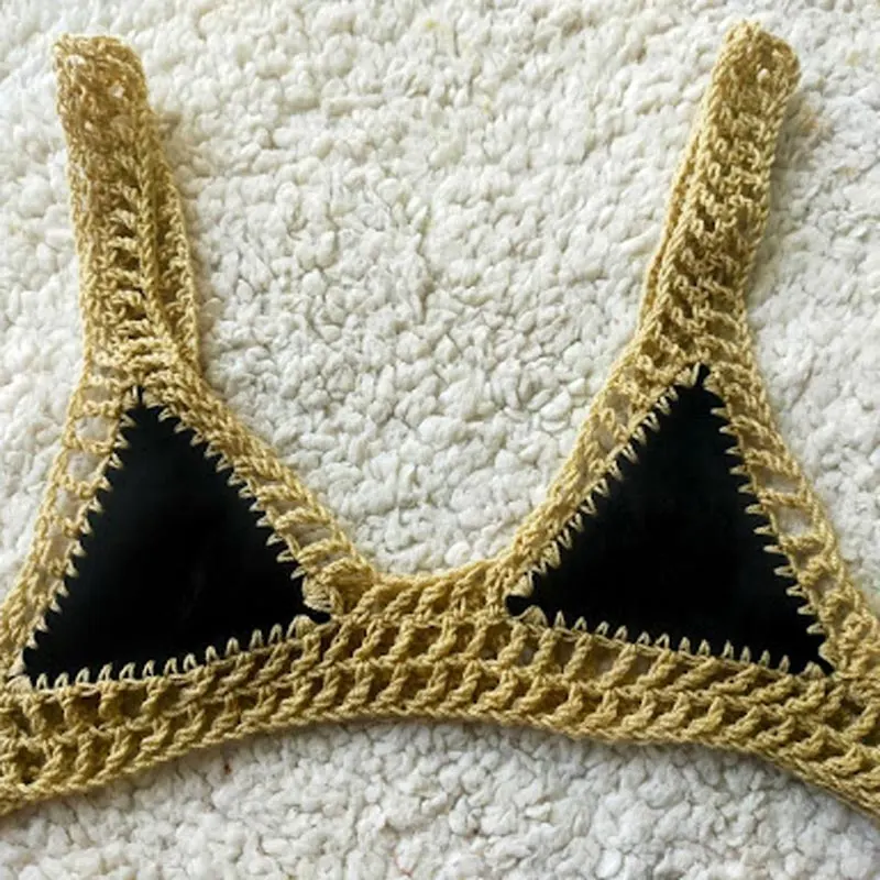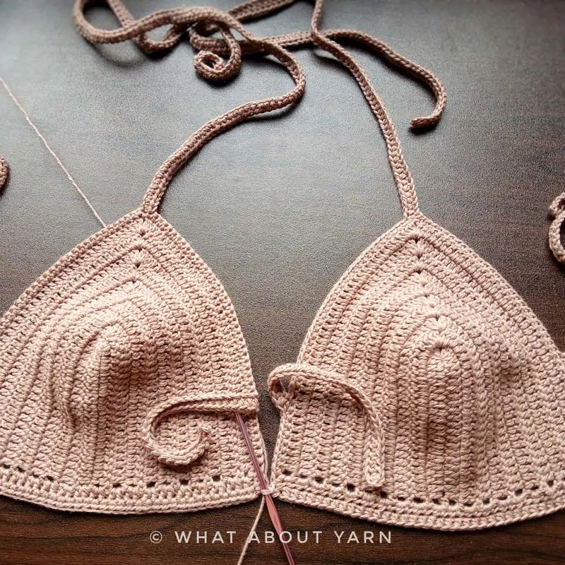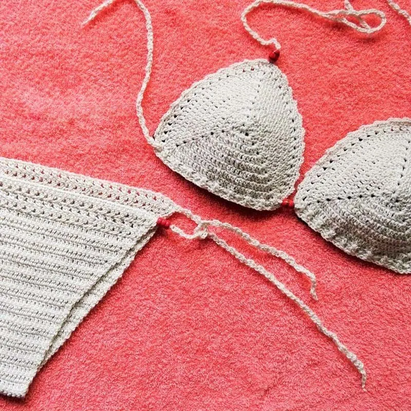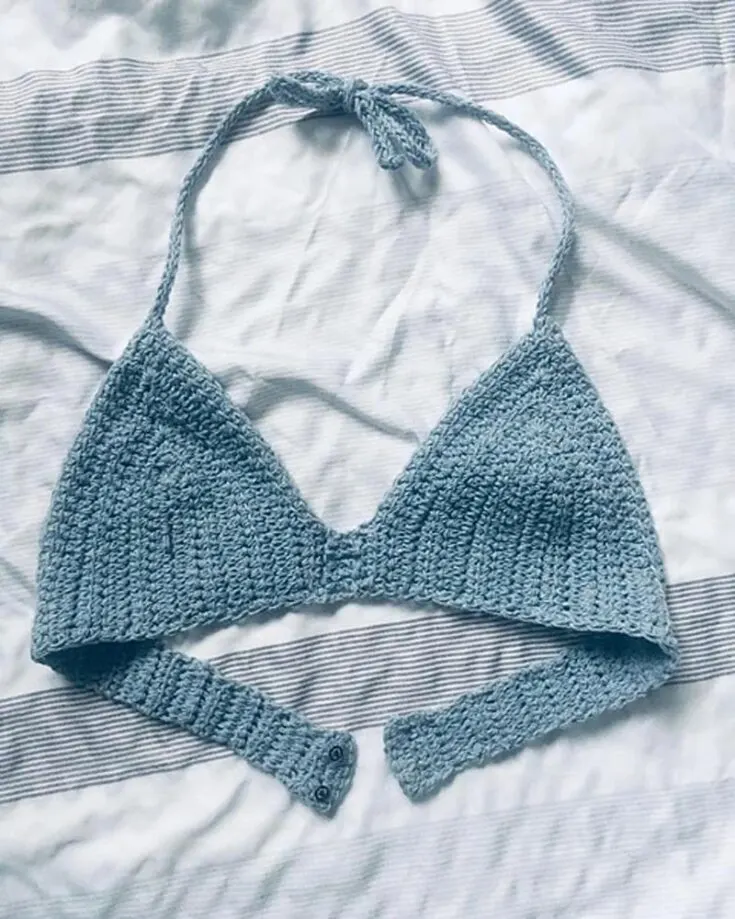 Hand wash your crocheted bikini in cold water with mild detergent and lay flat to dry to preserve its shape and color. Avoid wringing or twisting the fabric, as this can stretch or distort the stitches.