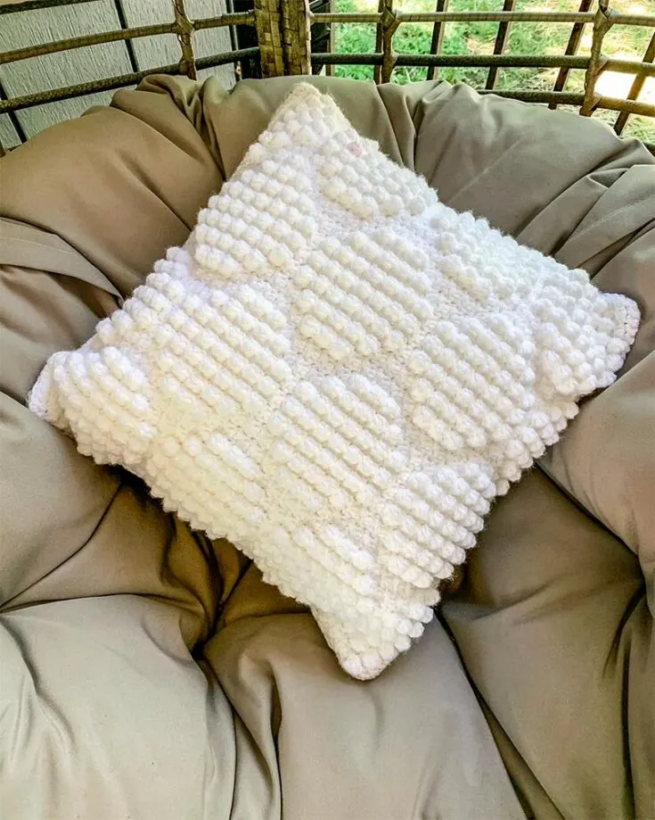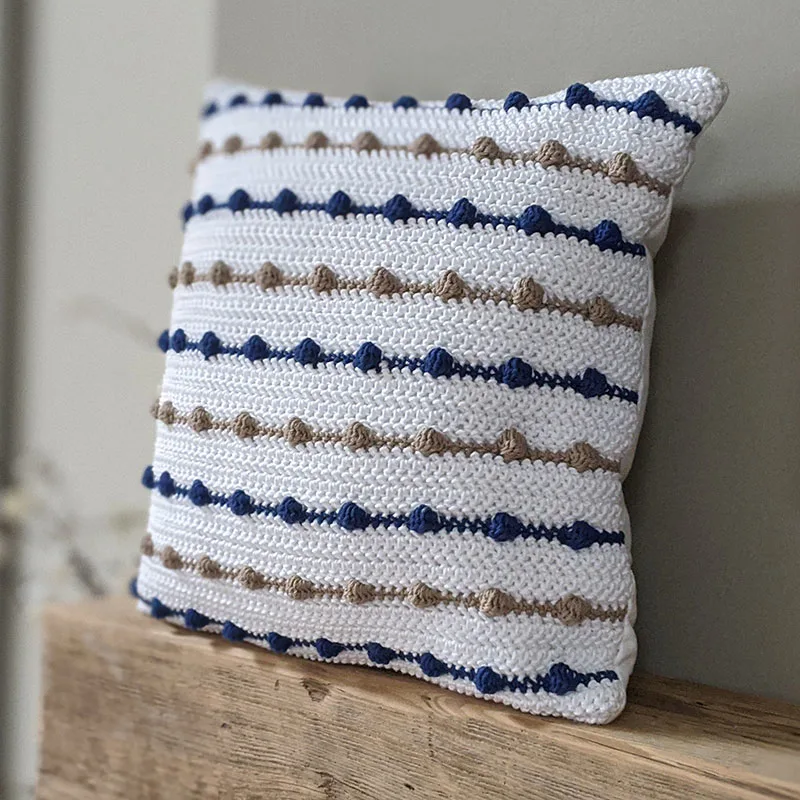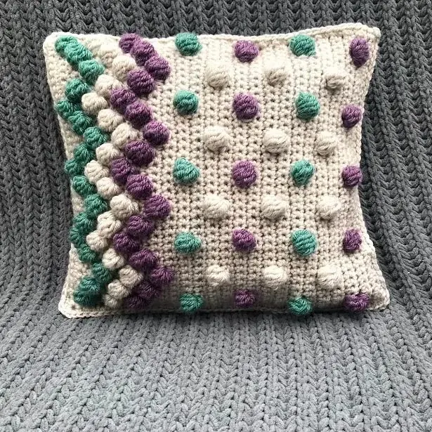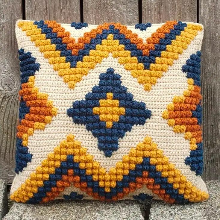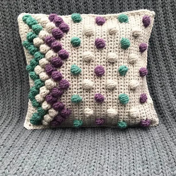 This eye-catching pillow pattern calls for single, half-double, and double crochet stitches, as well as bobble stitches for those nubby bobs. It's a simple pattern that requires some counting because the shapes can be easily messed up!