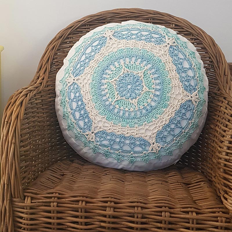This is without a doubt one of my favorite free crochet pillow patterns. This crochet mandala pattern is perfect for this rounded pillow. The detailed, lacy pattern adds a delicate, feminine touch to both modern and country-style furnishings.