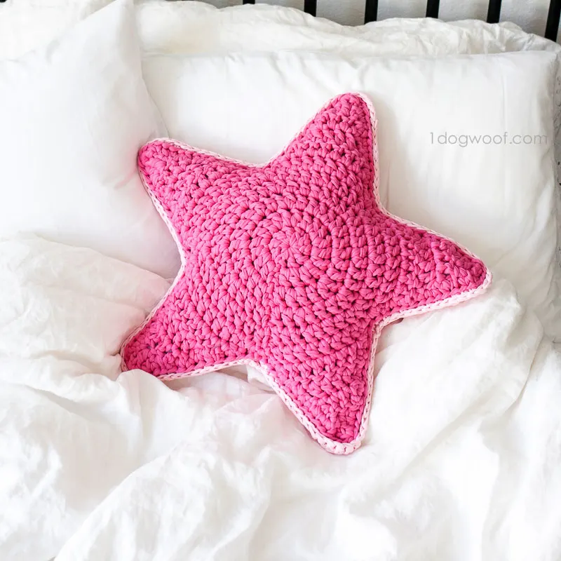 Inspired by an Under The Sea Adventure, this crochet star pillow looks exactly like how a starfish would be lying on the surface of the seabed. This star-shaped pillow holds its shape beautifully thanks to the use of T-shirt yarn, which is much chunkier than regular yarn.