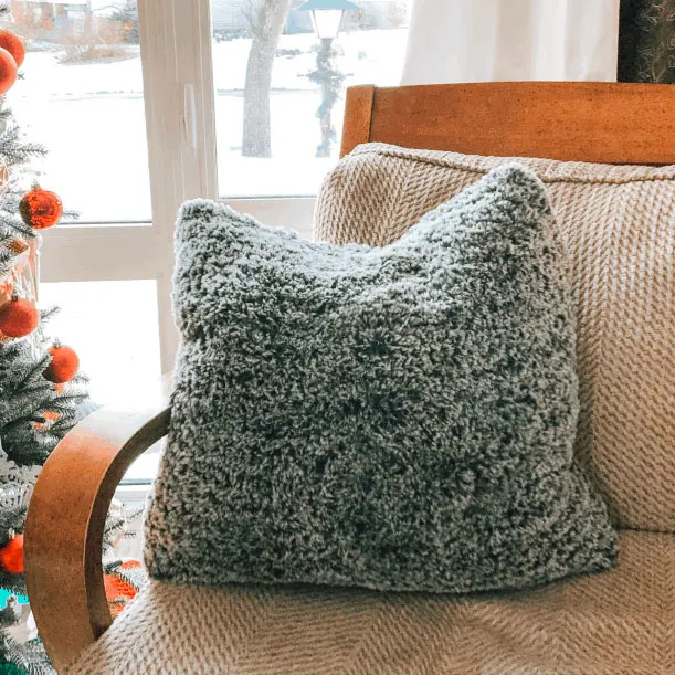 This is a fantastic crochet pillow idea, perfect for making as a gift for a friend, especially around the holidays. Using the bulky Bernat Blanket yarn not only cuts down on crochet time but also makes it super soft to hug.It appears to be very cozy and comfortable.