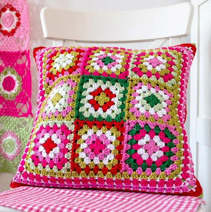 The plain ol' granny square is one of the most well-known crochet patterns. Here's how to crochet 9 of them into a stunning crochet pillow cover.
