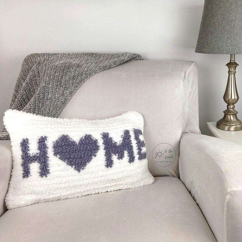 Look no further than this lovely Home is Where the Heart Is Pillow Cover Crochet Pattern for a quick and satisfying crochet project. The heart and letter designs are made with the colorwork crochet technique, aka tapestry crochet.