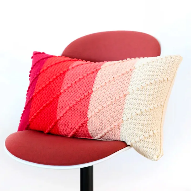 This pillow uses popcorn stitches and an ombre palette to create a cheerful and vibrant vibe. This pattern is essentially just a rhythmic repeat in different colors, so you'll be finished in a snap!