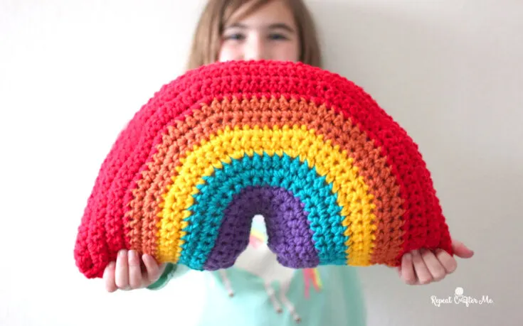 This stunning rainbow pillow is made with single crochet stitches and simple increases. This project is ideal as a joyful gift and is doable by beginners!