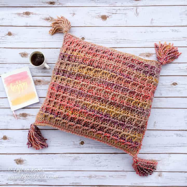 These textured pillows add warmth, color, and, of course, character to any corner they are placed in. This crochet pattern uses only basic crochet stitches, making it an excellent beginner project! In addition, this pillow cover pattern is easily adaptable to fit any size pillow.