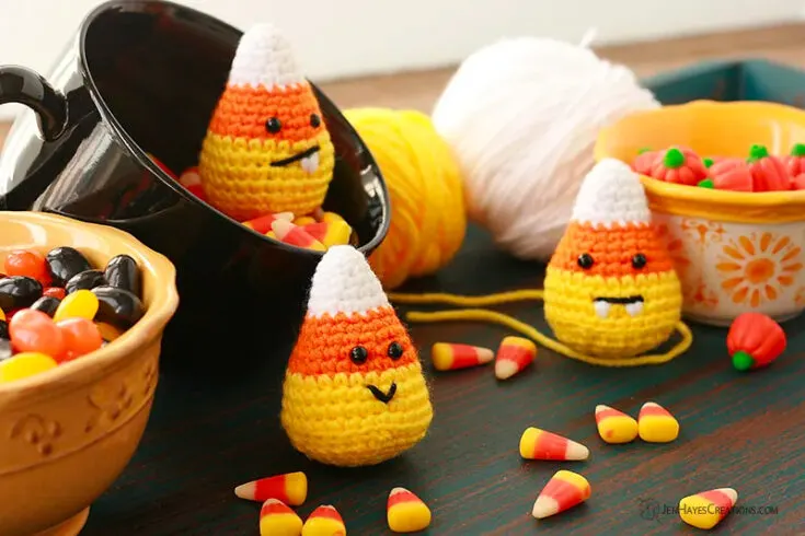 These Crochet Candy Corn Cuties work up so quickly but they have such a huge wow factor. They would make fun little Halloween party favors or just simple decorations that can last through fall and Thanksgiving.
