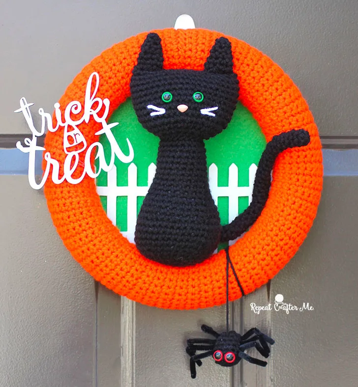 Made of 3 separate parts which are the black cat, the spider, and the wreath, this black cat wreath crochet pattern is not impossible! Definitely something to wow people before they even step into your house.