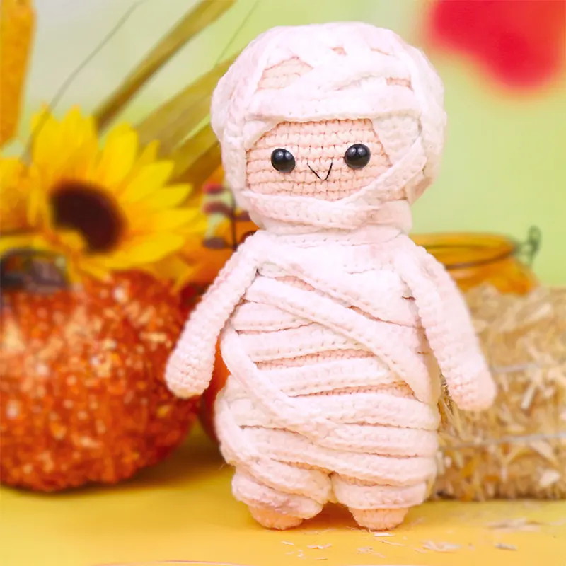 Crochet a cute mummy that just rose from the dead to place in your house this Halloween! An intermediate skill is required to complete this doll. This post also has links to a bundle of free amigurumi crochet patterns that are Halloween themed.