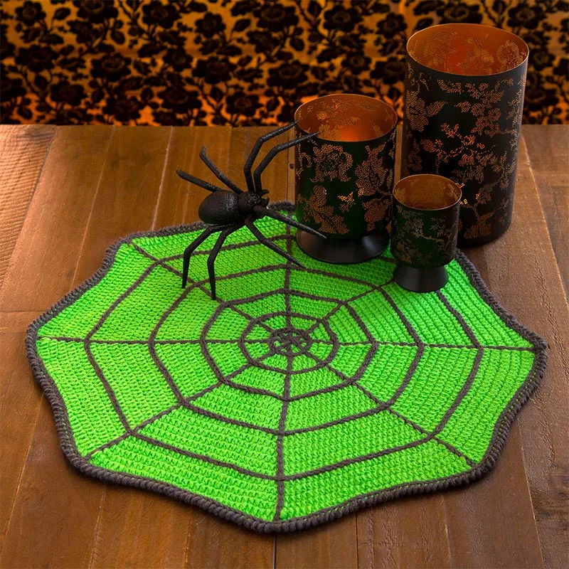 This spider web table mat crochet pattern can also be used as a floor mat. It's yet another practical Halloween addition to your house that is beginner friendly.