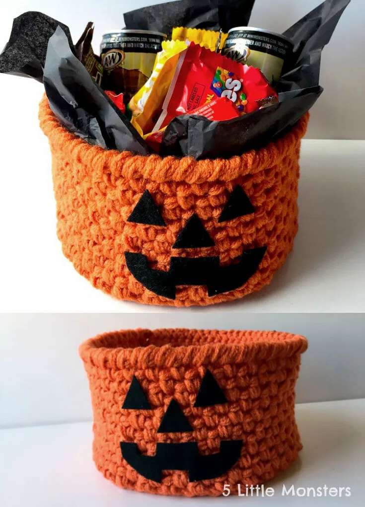 This Halloween pumpkin basket crochet pattern is a unique way to replace boring plastic bowls. Fill them up with the treats you plan to distribute to the children who come trick-or-treating or you can make them for your children for them to stand out when they go collect treats.