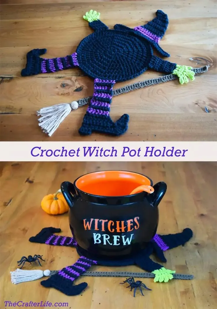 I absolutely love crafts that are practical. This is a witch pot holder crochet pattern that can be used to dissipate the heat from hot pots or pans. I love how creative this pattern is as it's literally a witch squashed/ flattened by your hot pot!