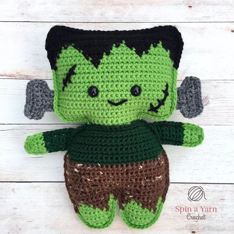 The more the merrier for our spooky Halloween friends. This Frankenstein crochet pattern would be a perfect companion for your other spooky dolls. This doll is made in separate pieces worked in flat rows and then joined together to give it that unique 2-D look. This project is recommended for intermediates and above as it incorporates the tapestry (or intarsia) crochet technique and has a lot of color works.