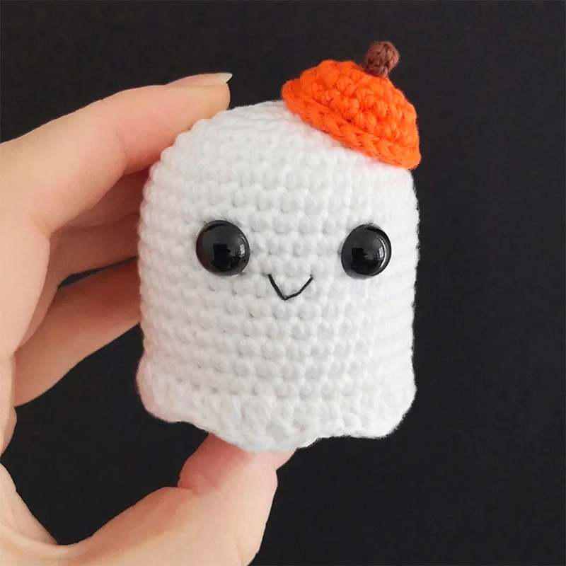 Make your own cute little ghosts come to life with this beginner-friendly amigurumi crochet ghost pattern. The whole ghost is made in one go, from top to bottom and the only sewing required is for attaching his little pumpkin hat. Also another one of the easier Halloween crochet patterns on this list.