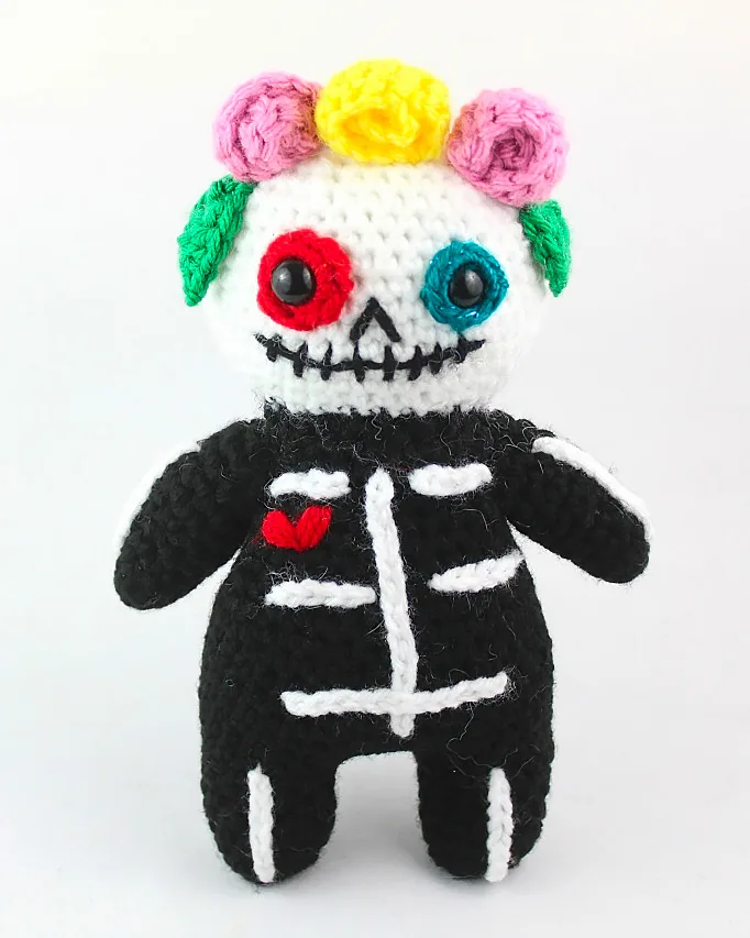 Halloween and Día de los Muertos (The Day of the Dead)? This skeleton doll fits the criteria for both! If you want something spooky, you can leave out the heart and the flowers and make the face of the skeleton to be not so happy.