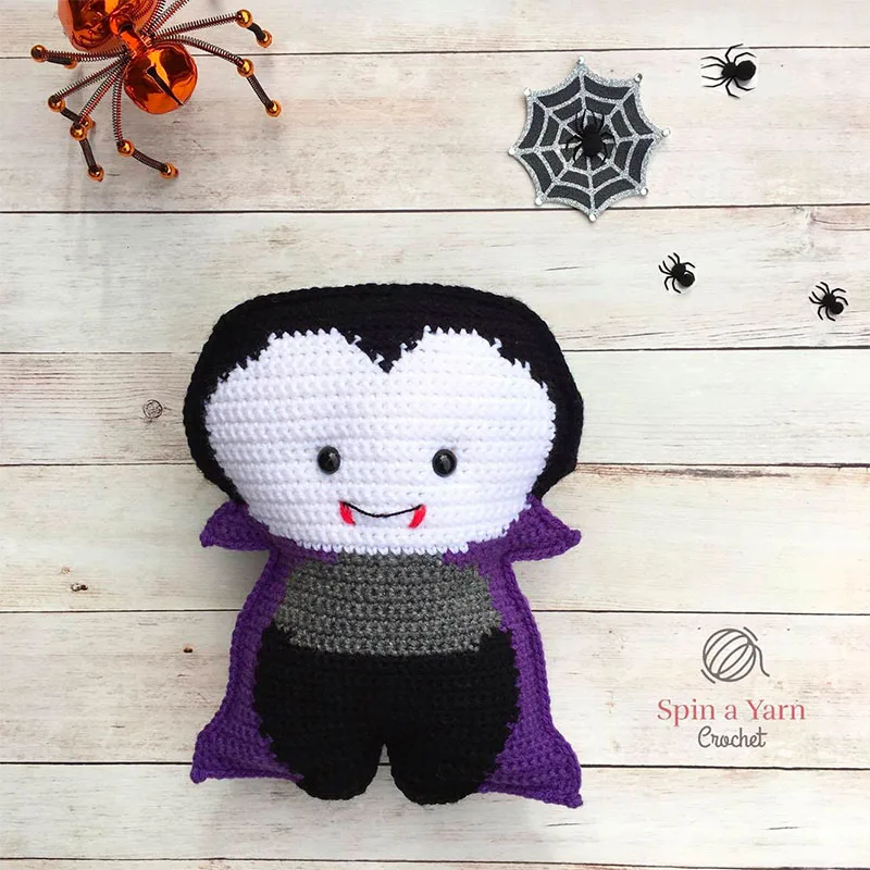 Another intermediate level and above project, this Vampire crochet pattern is made in two separate pieces. They're worked in flat rows and joined together to give them a special 2-D look. This pattern will use the tapestry (or intarsia) crochet technique and involves quite a bit of color work as well.