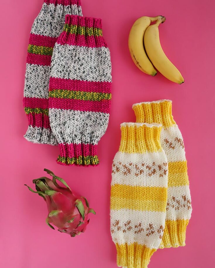 Learn to knit these adorable, fun, and fruity leg warmers that are to die for! These easy patterns use a fabulous self-striping yarn that makes it vibrant and colorful. You only need to click the link below to access the pattern.