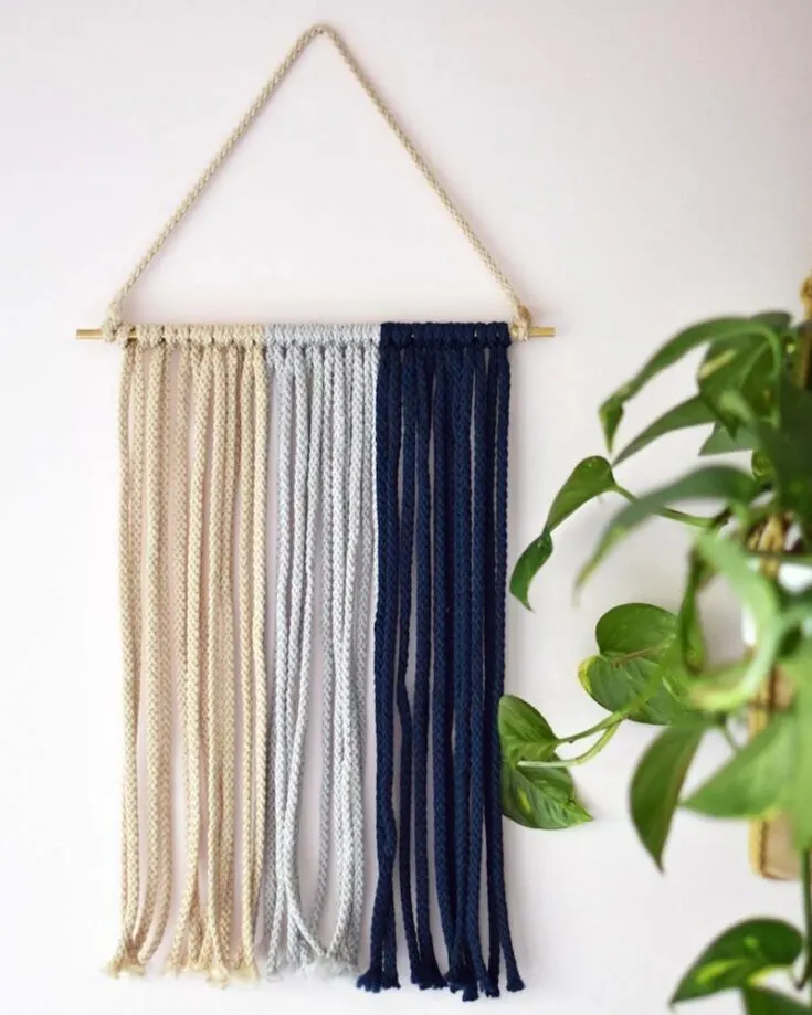 Wall hangings are always trendy to fill up empty spaces in any part of your home. They add a cute decorative flair to your walls and are a great way to show off your handmade work, too! All you need is to make multiple lark’s head knots on the dowel and let the cords dangle on their own. Pretty easy, right?