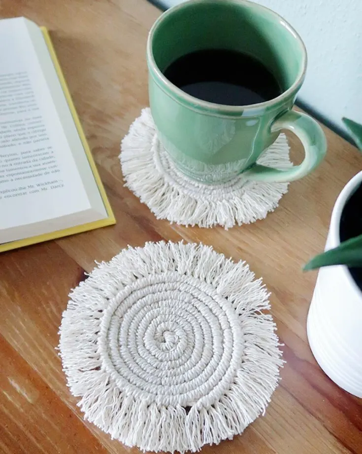 Here’s another macramé coaster design you can whip up in a day! They’re so adorable and add a cute bohemian flair to your home decor, too! They’re practical and functional and help keep your table surface clean from any rings or beverage residue from your mugs.