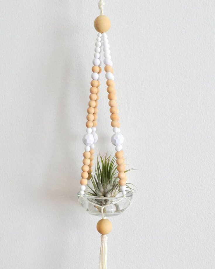 Here’s another easy plant hanger design you can try making over the weekend. It’s effortless to make, and you can decorate the hanging cords with wooden beads for a little extra pizzazz. Add a cute little plant or a succulent in the jar to add a touch of greenery indoors.