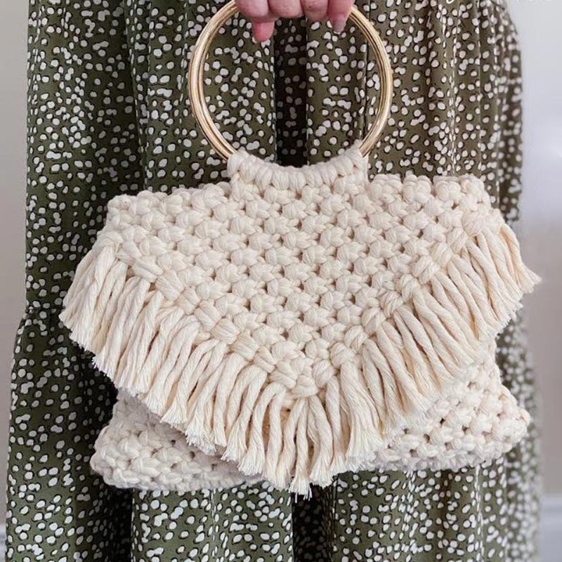 Though this bohemian-inspired fringe handbag may seem complex to make, it’s actually a beginner-friendly design! This beautiful bag is made of three basic macrame knots: the lark’s head knot, square knot, and double half-hitch knot. Try making one today!