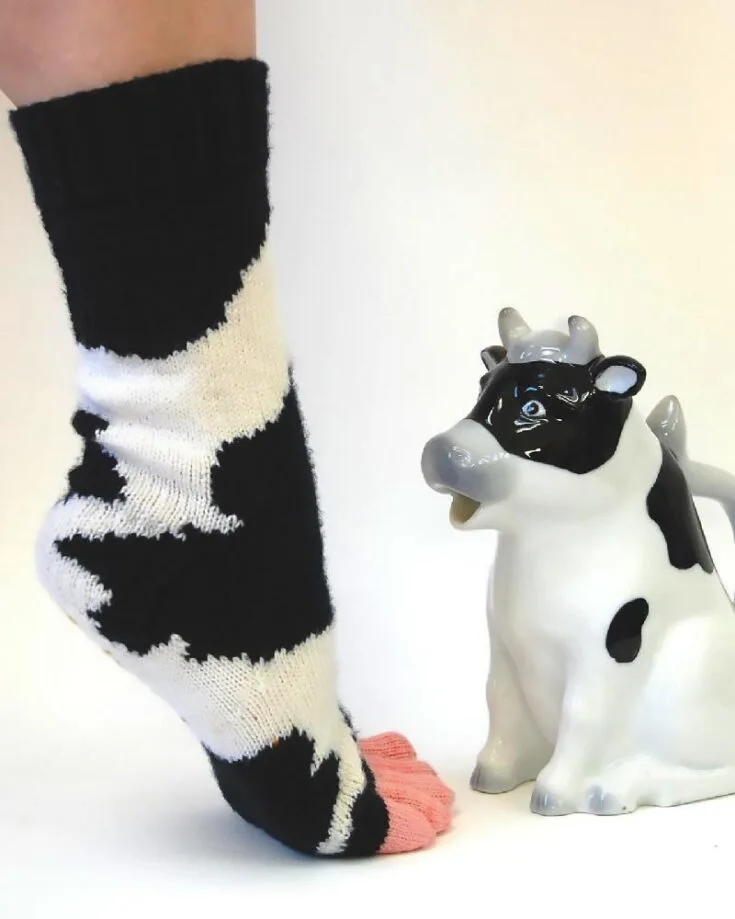 Learn to knit this adorable cow-inspired and intermediate project by clicking the link below! Isn't it cute? Cowasocky is a design knitted from a cuff-down, heel-flap, and gusset pattern that uses the Intarsia technique in the round with a 5-toed udder. This pattern includes sizing charts for making the socks in S, M, L, and XL sizes.