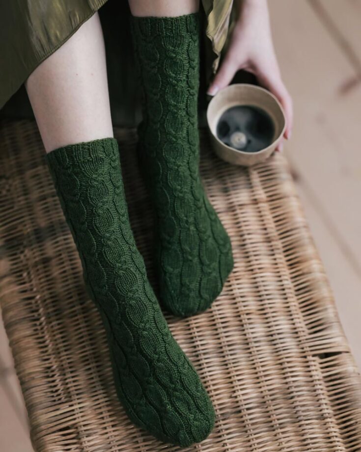 Speaking of feminine and classy, try knitting this lovely design called the Hellä Cable Socks. These socks are a delight to make as they are an intermediate-level design resulting in a one-size-fits-all pattern. It's worked from the cuff down to the toe.