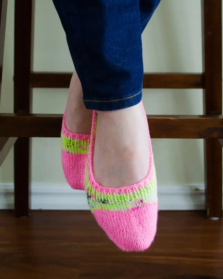Knit yourself and your family these adorable, funky, and playful socks! They're a joy to knit because it's a beginner-level project, a unisex design, and can be knitted quickly. It's a stash-buster project, and the pattern is made to have color play. It's a project with detailed instructions for six sizes, from toddlers to adults.