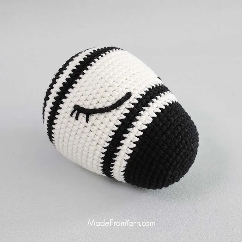 To create the Zebra’s head, begin with a magic ring and work single crochet stitches in a continuous round, without the need to join at the end of each round. Since it works in spiral rounds, you might want to learn how to make color changes in amigurumi to avoid a visible “jog seam”.