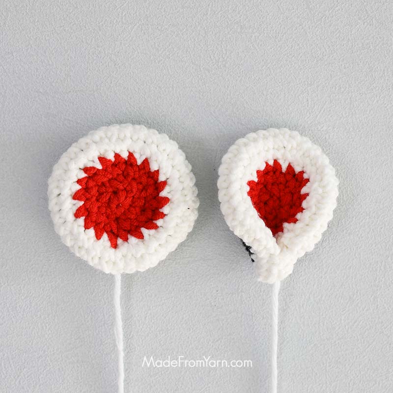 As for the eyes, I embroidered them to make them baby-safe. Make 2 foundation chains of 12 stitches and sew them onto the head after you have completed Round 29. You can also use safety eyes and ensure proper installation for baby safety.